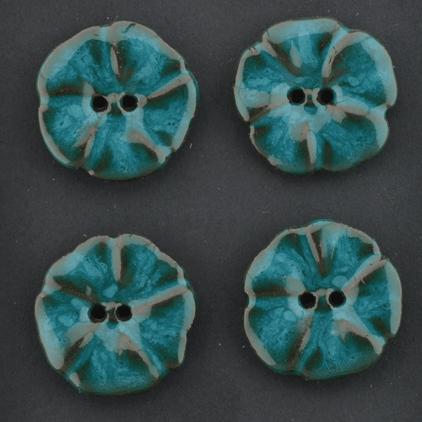 Handmade ceramic buttons in stone/flower form. These are 24-25 mm buttons sold in 4x sets. There were several sets in this design. Photo shows some of them, please allow minor differences as all the buttons are 100% handmade. All the buttons in this series have slightly different form.