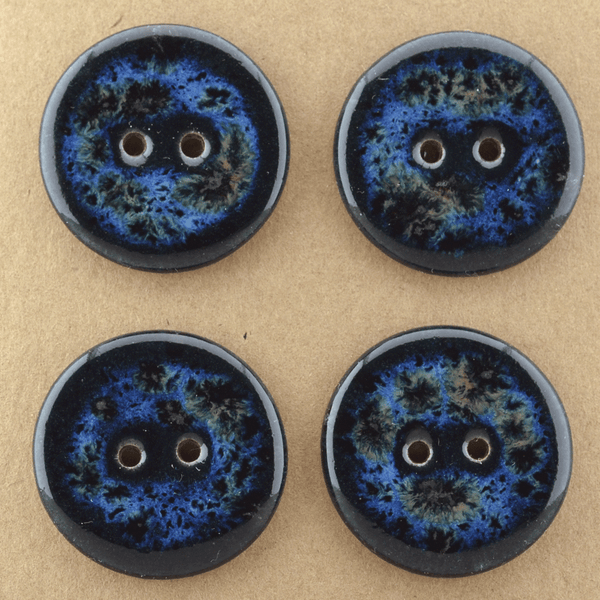 Big ceramic buttons in in dark blue with blue/brown crystals. These are about 27 mm and sold in different sets.