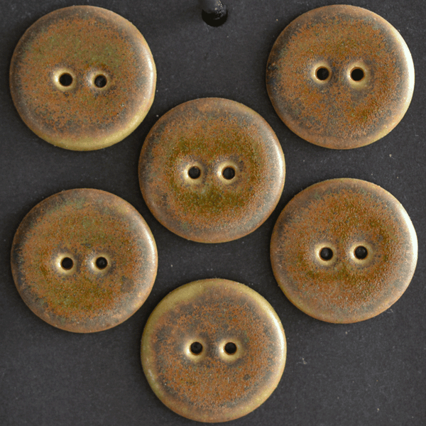 Ceramic buttons in brown / green with light crackles. These buttons are about 23 mm and sold in a set of 6.